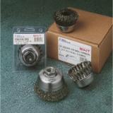 SAIT® 03501 Small Industrial Cup Brush, 2-3/4 in Dia Brush, 5/8-11 Arbor Hole, 0.02 in Dia Filament/Wire, Knot, Carbon Steel Fill